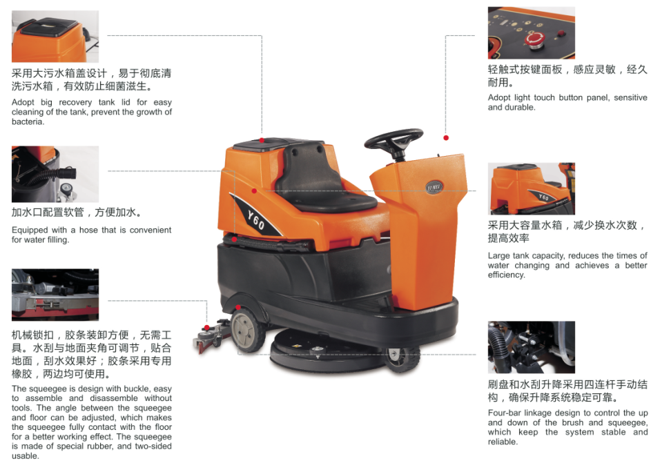 -升降系統:刷盤和水刮升降才用四連桿手動結構,確保升降系統穩定可靠。