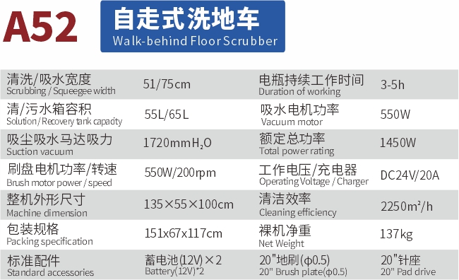 -刷盤:電子控制,自動裝卸刷,使用更方便;刷盤運轉時牽引機器移動,降低蓄電池能量損耗,續航時間更長久