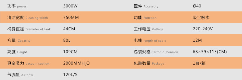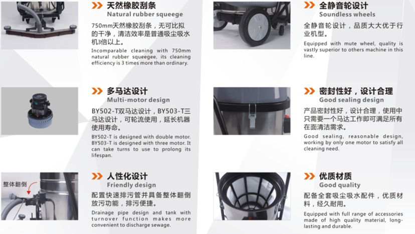 -水刮清潔寬度750mm,清潔效率是普通吸塵吸水機(jī)3倍以上。