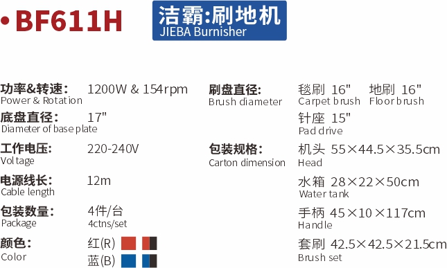 -具有洗地、洗地毯、起蠟、低速拋光等四大功能,能同時滿足顧客的多種清潔需要。