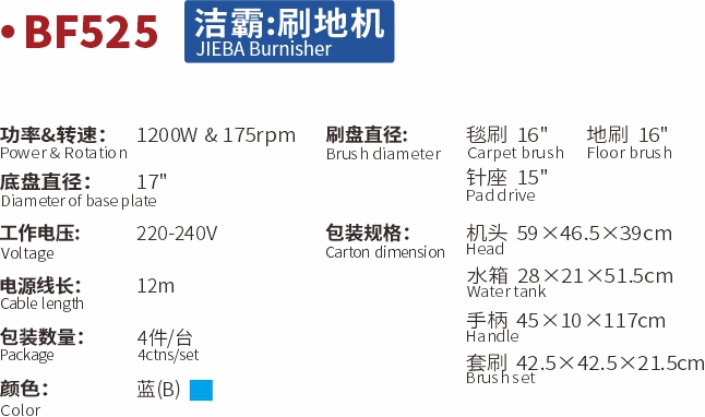 -具有洗地、洗地毯、起蠟、低速拋光等四大功能,能同時滿足顧客的多種清潔需要。