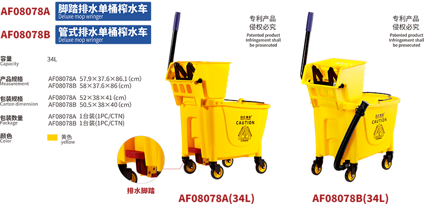 (6)雙桶設計,清水污水分開,拖把隨意清洗。